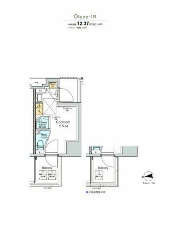 | Layout ㎡ | 1R 12.37㎡ |